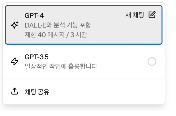 라이트 유저라면 상관 없겠지만 아무리 라이트유저라고 생각되더라고 막상 대화 하다보면 40개의 메시지가 금방 소비되는걸 느낄 수 있습니다. GPT를 한번이라도 사용해본 분이라면 더욱 더 GPT를 활용 할 수 있는 방법이 많아 지기 때문에 실질 적으로 3시간 40개 메시지는 많은 제약 사항이라 고민이 많아 지는 부분 입니다.