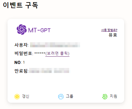 (예 :MT-GPT는 6개월 기본으로 가입 했습니다.)